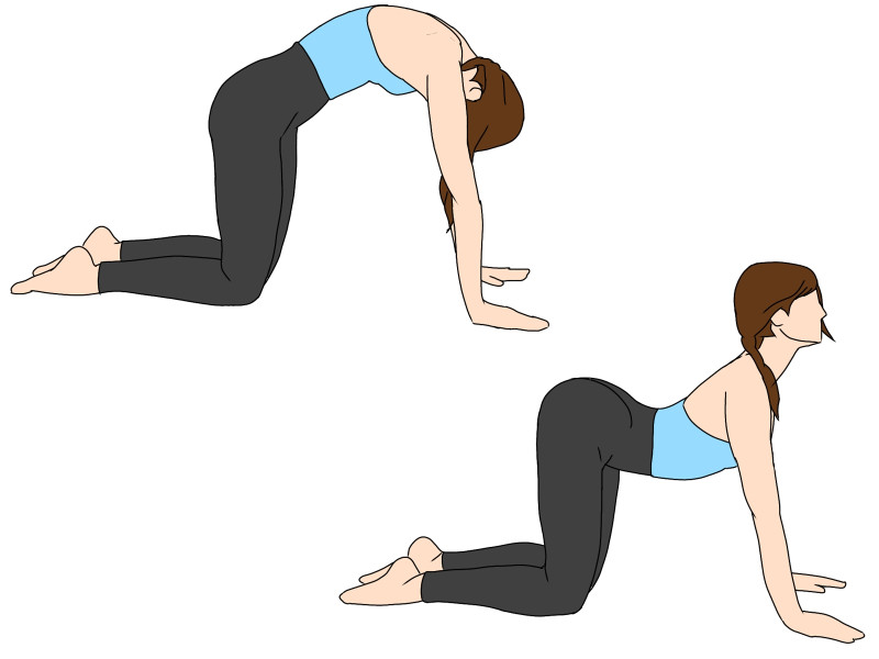 1、四つん這いになり背中を丸めて頭を下げる(口から息を吐く)